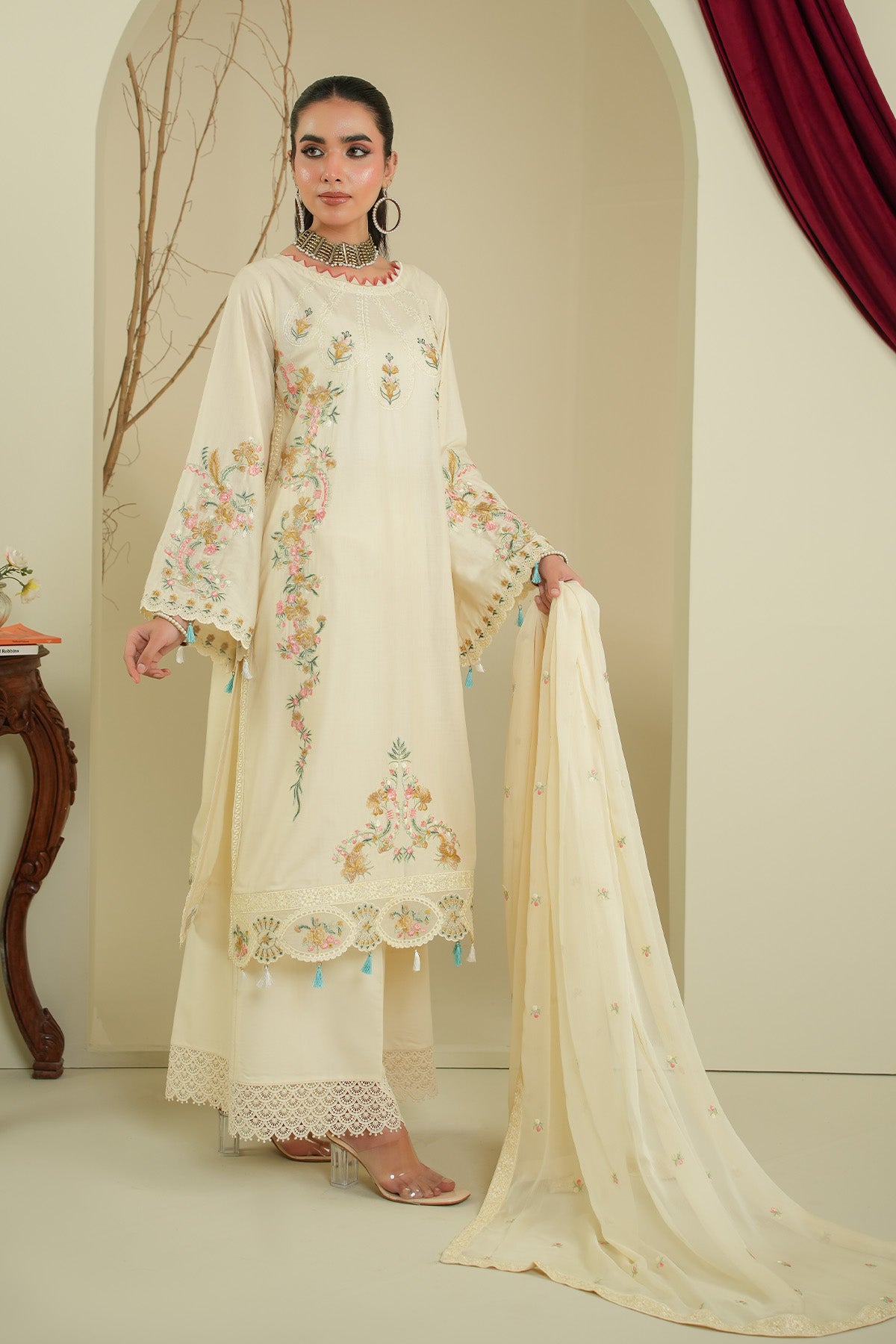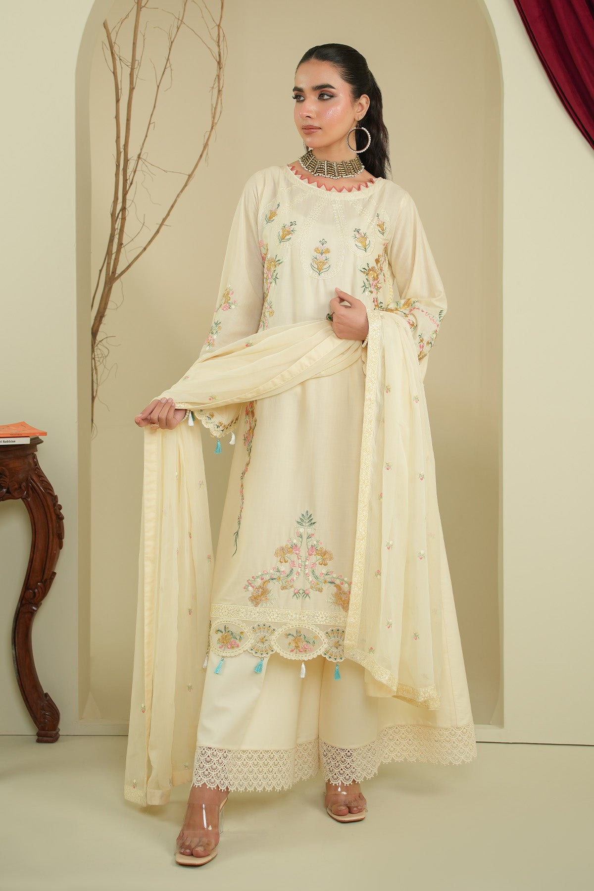 - Chiffon Embroidered Dupatta